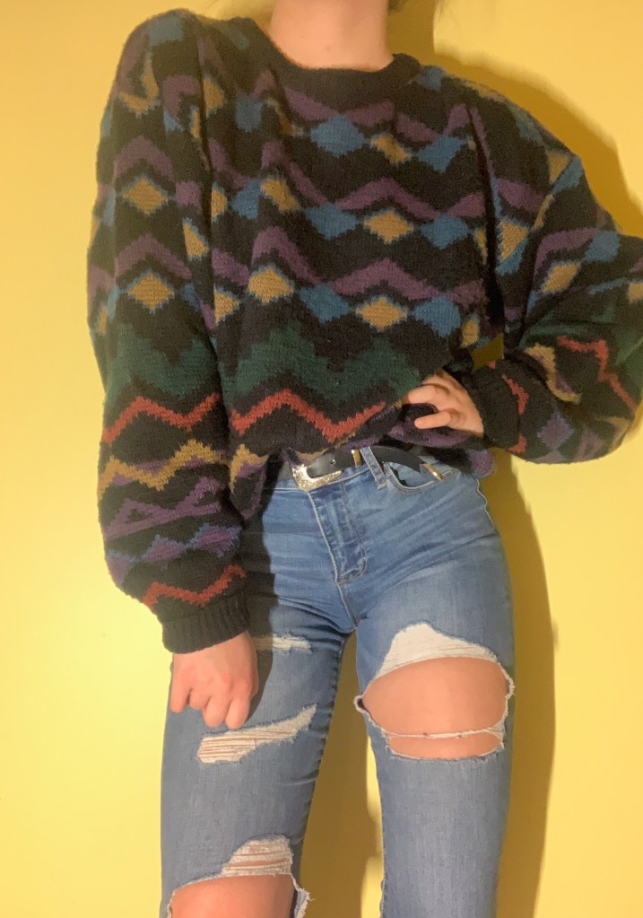 Sweaters from the 80s and 90s have the MOST adorable patterns. They make a simple sweater and jeans outfit seem so put together when really it is so effortless. I added this black belt to all the looks because I’m obsessed with it (from Target).